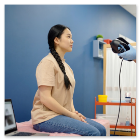 めまいが起こった状況、持続時間、伴う症状(耳鳴り・難聴・頭痛・しびれなど)、既往歴や内服薬を丁寧にお聞きします。そのうえで耳・鼻・喉・神経学的診察を行います。 - 眼振(がんしん)検査